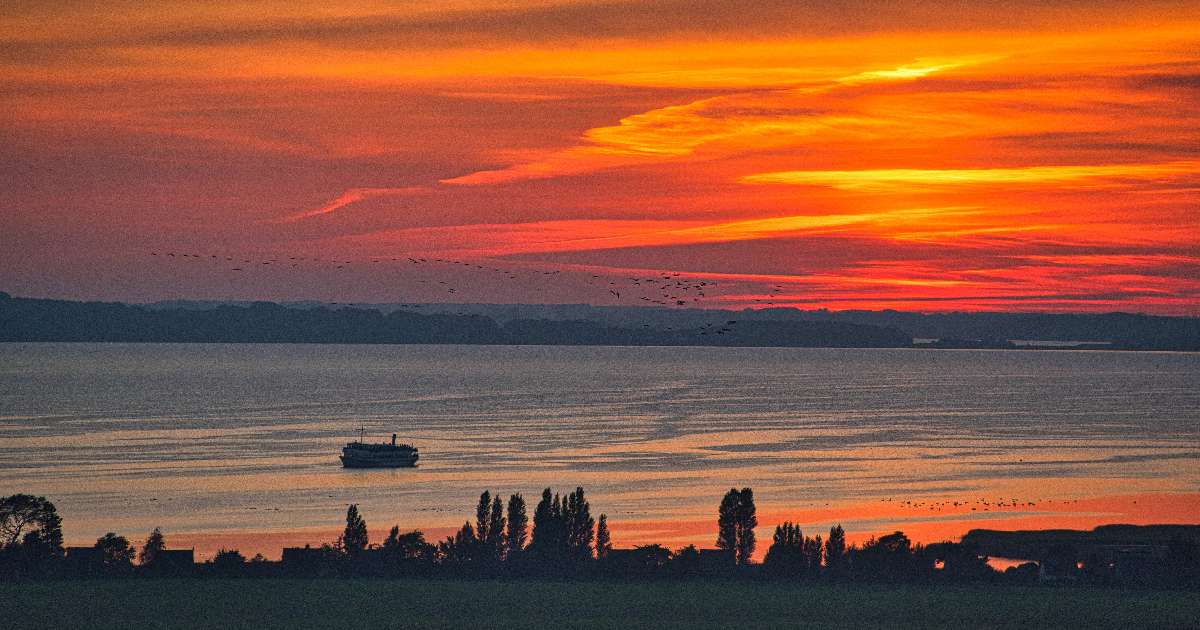 Mein Tipp: Plane den Tempelberg entweder früh am Morgen oder zum Sonnenuntergang ein – dann wirken Bodden, Wiesen und Himmel besonders ruhig und fotogen. Und falls Du im Herbst auf der Insel bist, lohnt sich der Tempelberg doppelt: Dann ziehen Kraniche in großen Trupps zum Bodden, um dort ihre Schlafplätze aufzusuchen – ein Natur-Schauspiel, das man so schnell nicht vergisst.